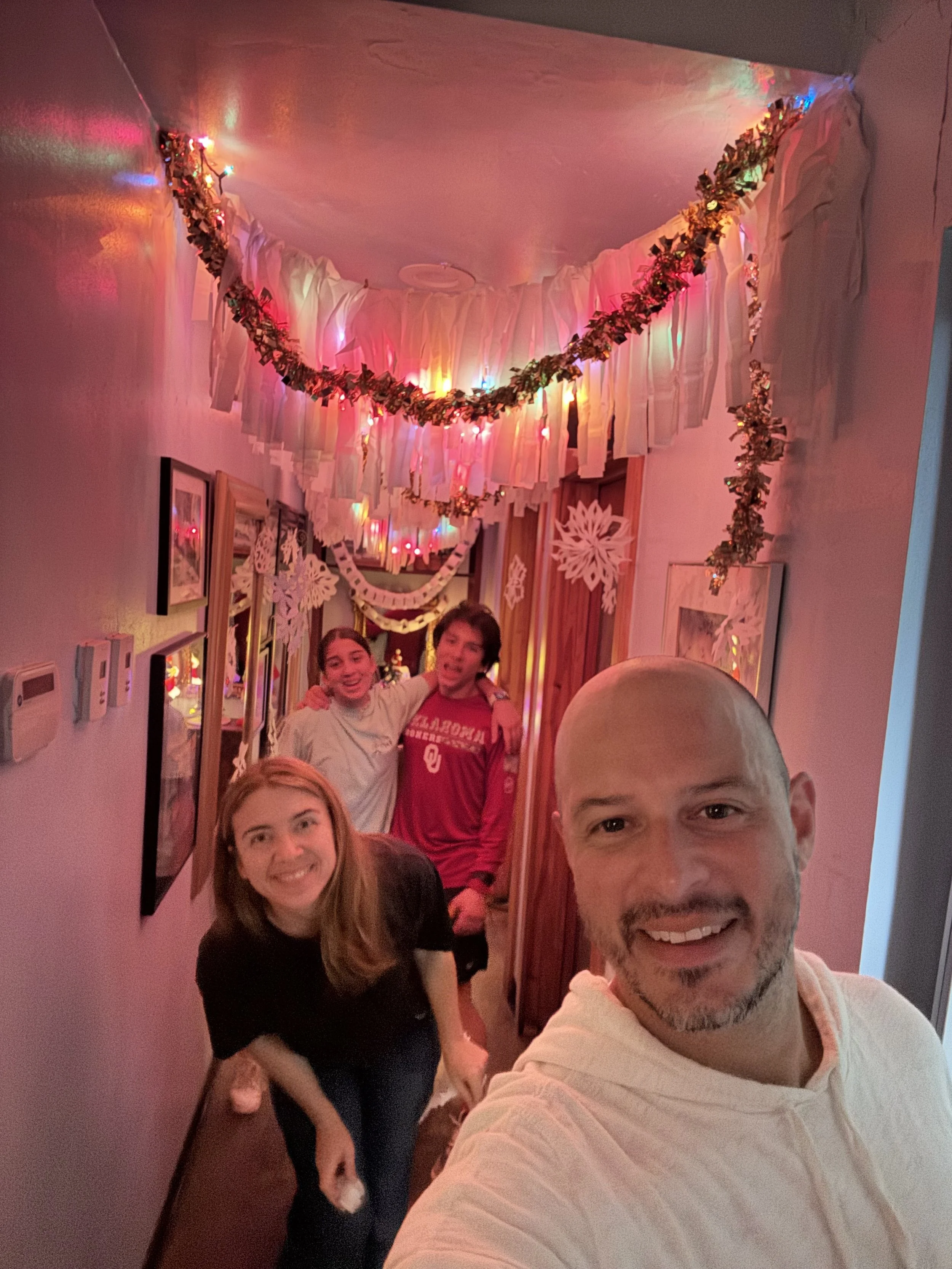 That’s my family in the photo — decorating this hallway at Encina, a tradition that reminds us how joy grows when people create something together.
