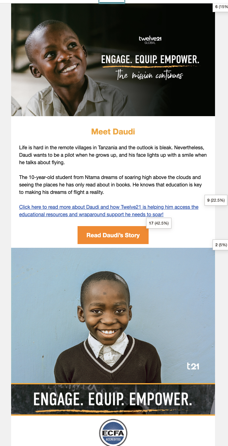 We used cultivation emails and social posts to tell people about Daudi, Joshua, and Alex’s experience and engage your audience, fostering deeper connections and driving support.